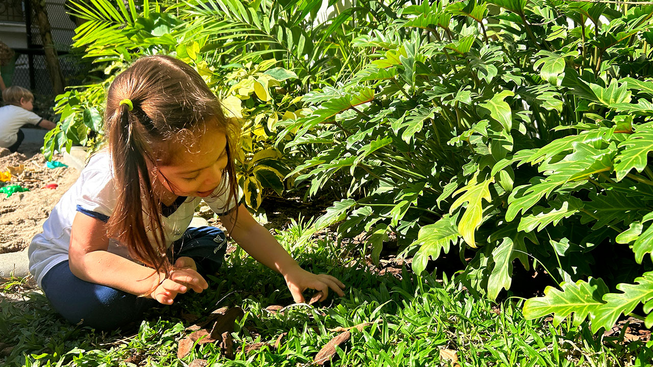 Entendemos como fundamental o contato das crianças com a natureza em seu dia a dia. Proporcionamos esta interação nas brincadeiras no parquinho, nas aulas de Ciências da Natureza com a Ecobé e nas inúmeras atividades que as professoras fazem neste sentido, como jardinagem, aulas e brincadeiras ao ar livre (amarelinha, histórias em volta da árvore, pintura com cavaletes no parquinho), interações com as hortas, banhos de mangueira e muitas outras oportunidades. Além de um grande projeto chamado “Meio Ambiente e Seres Vivos”, no qual estudamos, pesquisamos e desenvolvemos atividades exploratórias e investigativas em torno da responsabilidade ambiental, da valorização da natureza e de todas as formas de vida.