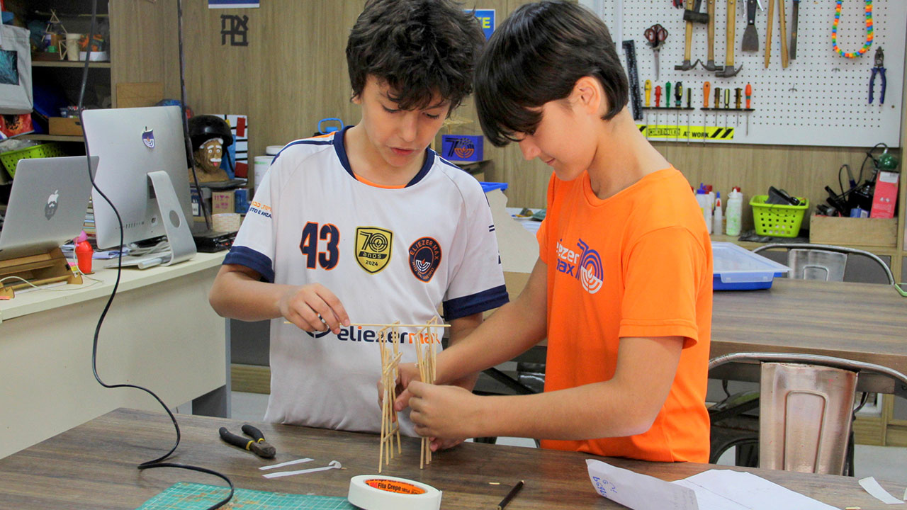 É a partir do Fundamental I que as crianças entram em contato de forma mais sistematizada com as diferentes linguagens e áreas do conhecimento. Além das aulas com a equipe do Núcleo Comum em salas com equipamentos multimídia, os alunos do Fundamental I do Eliezer Max têm aulas diárias de Inglês, e, uma vez por semana, com professores especialistas em outros espaços da escola, como as salas de Teatro, de Artes Integradas, Espaço Maker, Laboratórios de Ciências da Natureza (parceria com a Ecobé), Biblioteca e diversos espaços para esportes e Educação Física. A partir do 1º ano, os alunos passam a ter aulas de Xadrez como componente curricular, ministradas por uma professora especialista. No 2º e 3º anos, além do Xadrez, são introduzidas aulas de Jogos, também conduzidas por uma especialista na área. A partir do 2º ano, os estudantes iniciam o processo de alfabetização em duas línguas estrangeiras: Inglês e Hebraico. A escola incentiva também a participação dos alunos em eventos acadêmicos externos, como olimpíadas do conhecimento, concursos, campeonatos esportivos e outros.