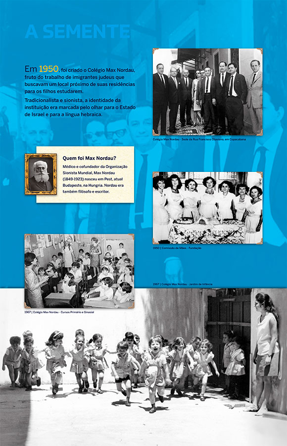 Na mesma época histórica em que o Eliezer foi fundado, mais especificamente em 1950, foi criado o Colégio Hebreu Brasileiro Max Nordau. Surgia do trabalho de um grupo de imigrantes judeus que frequentava uma sinagoga em Botafogo, e buscava um local mais próximo de suas residências para os filhos estudarem.