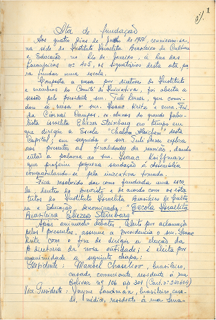 Após um período de atividades, os integrantes do IIBCE sentiram a necessidade de criar uma escola judaica moderna, humanista, não ortodoxa, progressista e comprometida com inovação pedagógica, fundando, assim, a Escola Israelita Brasileira Eliezer Steinbarg. O nome da escola foi dado em homenagem ao pedagogo, escritor e professor de ídiche e hebraico, Eliezer Steinbarg (1880-1932), nascido na Bessarábia, hoje Moldávia. Steinbarg morou no Brasil e foi uma importante figura nos primeiros anos de funcionamento do Colégio Scholem Aleichem, escola fundada em 1928, no Rio de Janeiro, pelos pais dos fundadores do IIBCE.
